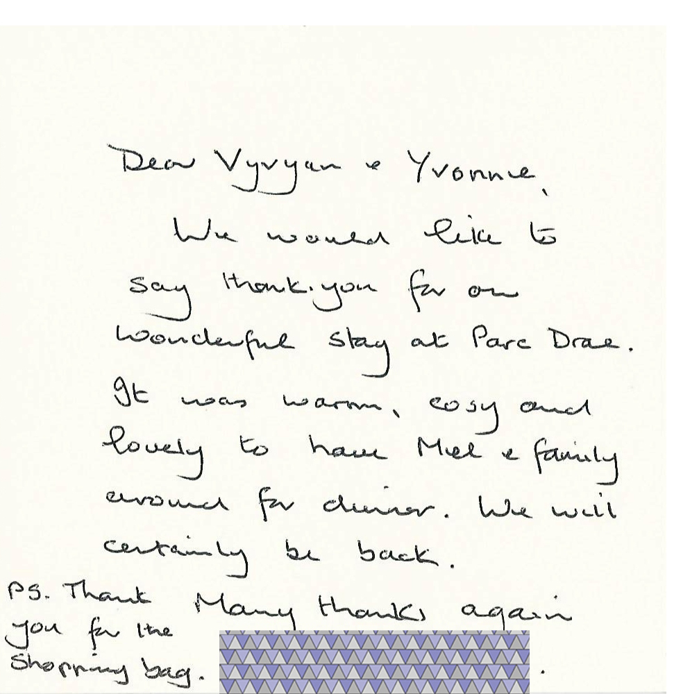 We are pleased to feature some of the many thank you cards that we have received over the years.